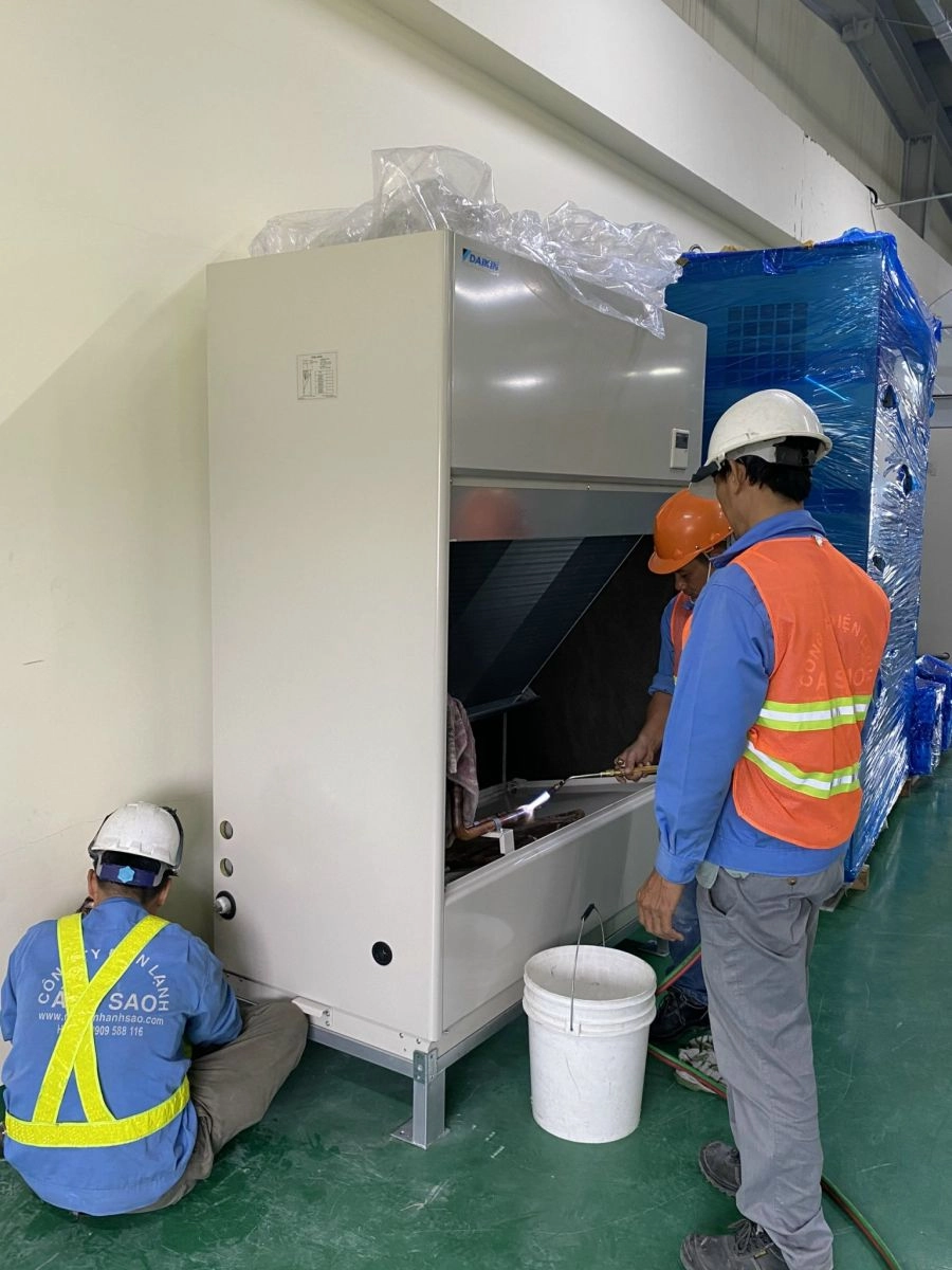 Hình ảnh Ánh Sao thi công máy lạnh tủ đứng công nghiệp cho nhà xưởng