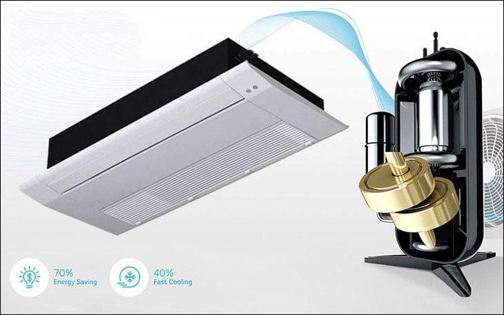 Tuy nhiên, máy lạnh âm trần LG 1 hướng thổi trang bị công nghệ Smart Inverter có khả năng thay đổi tốc độ máy nén để duy trì nhiệt độ thích hợp. Vì vậy, máy lạnh tiết kiệm điện hiệu quả nhưng vẫn đảm bảo làm lạnh ổn định.