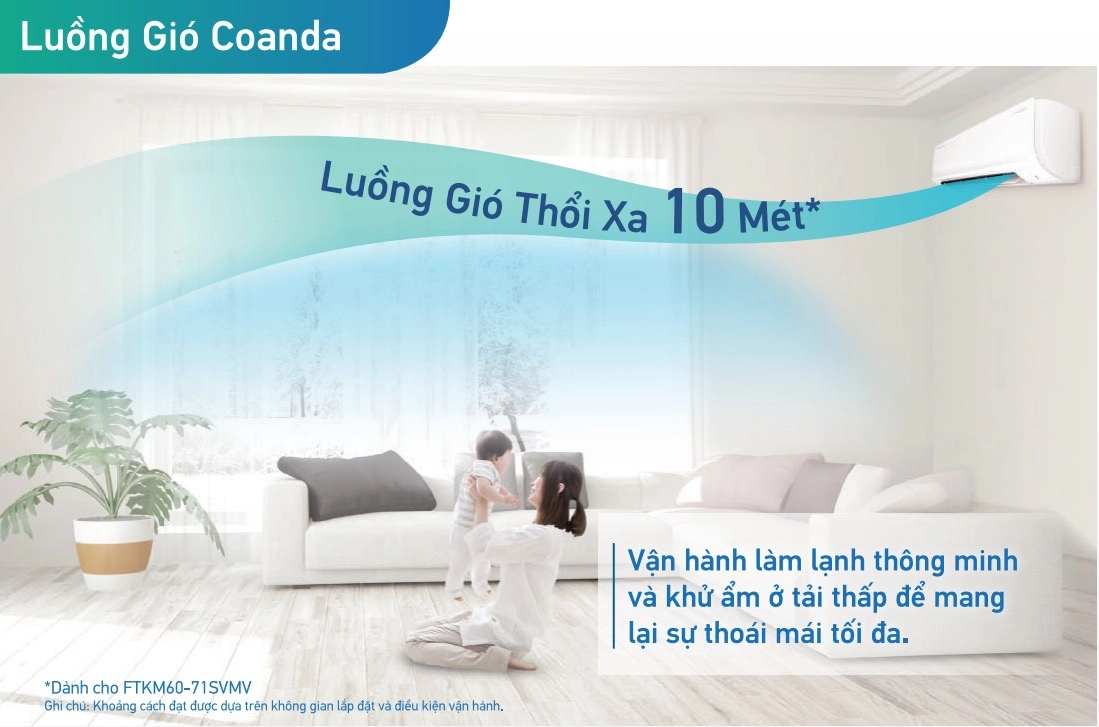 Luồng gió Coanda: Mặt nạ được thiết kế thông minh tạo ra luồng gió dựa trên hiệu ứng Coanda giúp tránh gió lùa trực tiếp vào cơ thể và mang lại không khí thoải mái đều khắp phòng.