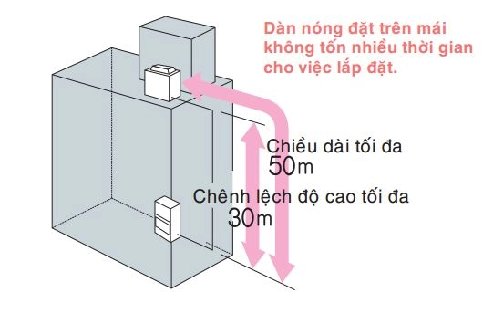 Thiết kế linh hoạt: được thiết kế phù hợp với đường ống dài tối đa 50m chiều dài vào 30m chênh lệch độ cao đáp ứng cho mọi yeu cầu của công trình từ qui mô vừa đến qui mô lớn.