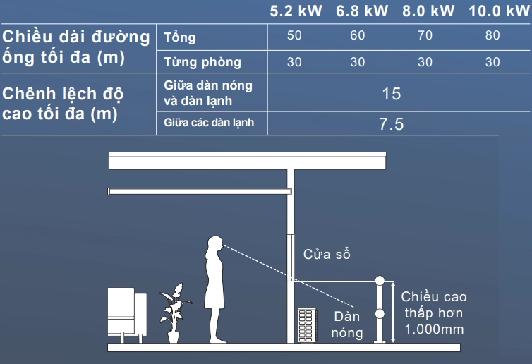 Chỉ với một dàn nóng, sẽ tránh được tình trạng quẩn gió và máy nén sẽ không bị quá tải, do đó làm tăng tuổi thọ của sản phẩm.