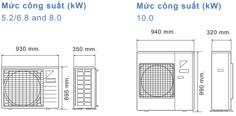 Dàn nóng 5.2 - 8.0 chỉ cao 695 mm.