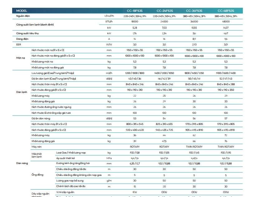2. Mô tả chi tiết của Điều hòa âm trần Casper 48000 BTU 1 chiều CC-48FS35