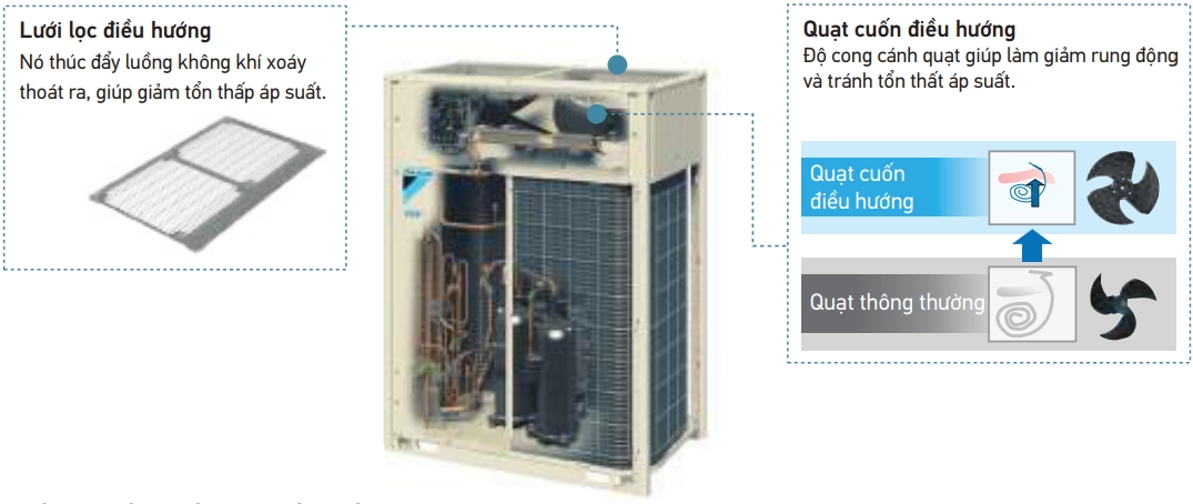 Lưu lượng gió lớn, áp suất tĩnh cao và độ ồn thấp