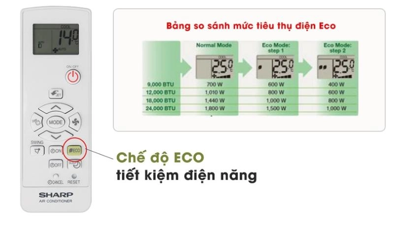 Chế độ Eco giúp máy vận hành điện năng thấp hơn thông thường