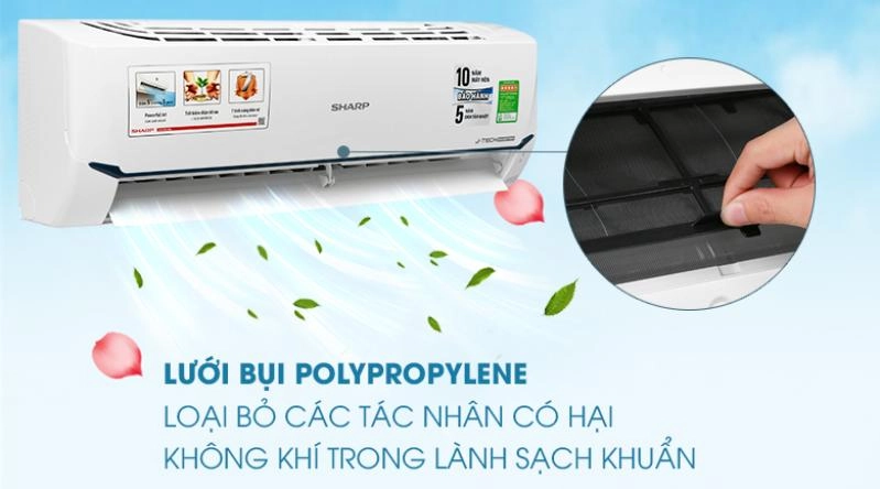 Lưới bụi Polypropylene sẽ loại trừ các tác nhân gây dị ứng như: bụi bẩn, lông thú, phấn hoa,... Máy lạnh Sharp Inverter mang đến cho bạn không gian sống sạch và bảo vệ sức khỏe của gia đình bạn.
