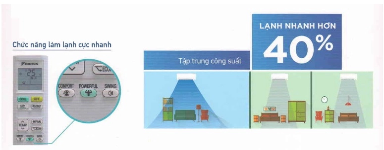 Chỉ cần nhấn nút "POWERFUL" căn phòng của bạn chọn sẽ dược hệ thống ưu tiên làm lạnh nhanh,đáp ứng ngay lập tức nhu cầu của bạn