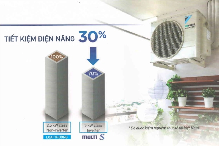 - Sản phẩm Daikin Multi S giúp nâng cao hiệu suất của hệ thống điều hòa không khí cho nhiều phòng bằng cách kết nối nhiều dàn lạnh với nhau chỉ với duy nhất 1 dàn nóng
