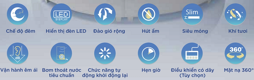 Luồng gió 360 độ, đảo gió tối đa 40 độ, cấp lạnh đều cho cả không gian.