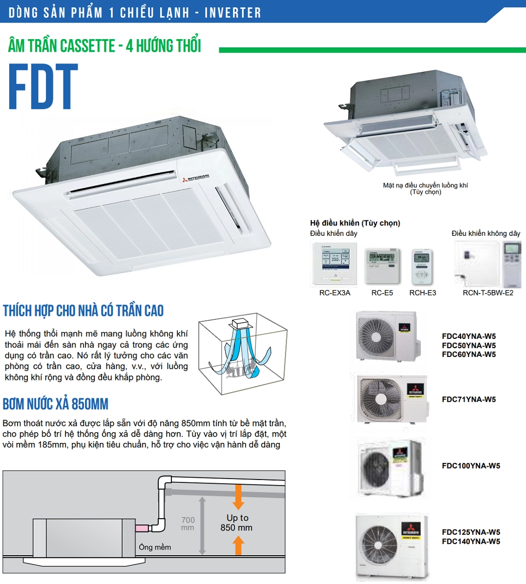 - Máy lạnh âm trần Mitsubishi Heavy FDT50YA-W5/FDC50YNA-W5 Inverter Gas R32