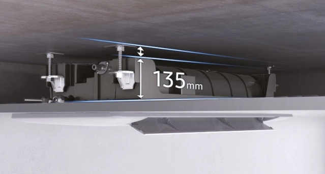 Thiết kế cực kỳ mỏng với chiều cao thân máy chỉ 135mm và có thể vừa với không gian trần nhỏ chỉ 155mm, đây là nột giải pháp phù hợp và hiệu quả để làm lạnh hay sưởi ấm với các không gian đặc biệt hạn chế về độ cao trần. Ngoài ra, thiết kế thanh lịch và nhỏ gọn giúp tạo nên một phong cách hài hòa, sang trọng cho không gian sống.