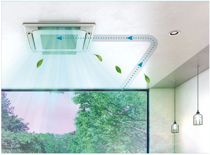 Duy trì môi trường trong nhà thông thoáng bằng cách đưa gió tươi vào bên vào phòng chỉ bằng cách kết nối trực tiếp ống dẫn gió tươi với lỗ kết nối có sẵn trên dàn lạnh. Việc lưu thông gió tươi vào trong phòng sẽ giúp ngăn nấm mốc, vi khuẩn và cung cấp đủ oxy cho người sử dụng.