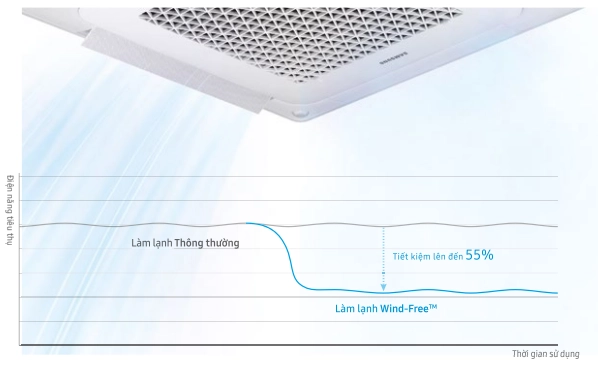 Chế độ WindFreeTM giúp tiết kiệm điện năng lên tới 55% so với chế độ làm lạnh thông thường, do đó bạn có thể thoải mái tận hưởng không gian mát lạnh mà không phải lo lắng về hoá đơn tiền điện.