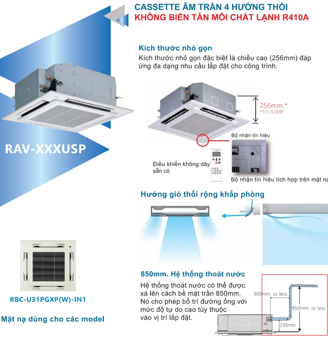 Máy lạnh âm trần Toshiba RAV-360USP-V/RAV-360ASP-V Gas R410a - 1 pha