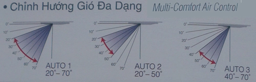 Chế độ tự động đảo gió, điều chỉnh cánh đảo gió, cửa thổi gió rộng, phân tán luồng khí đều xung quanh qua trái và phải. Tạo luồng gió mạnh mẽ nhưng vẫn đảm bảo sự yên tĩnh khi máy đang vận hành.
