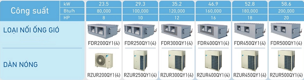 Máy lạnh giấu trần Daikin FDR200QY1/RZUR200QY1 Inverter Gas R410a - Model 2023