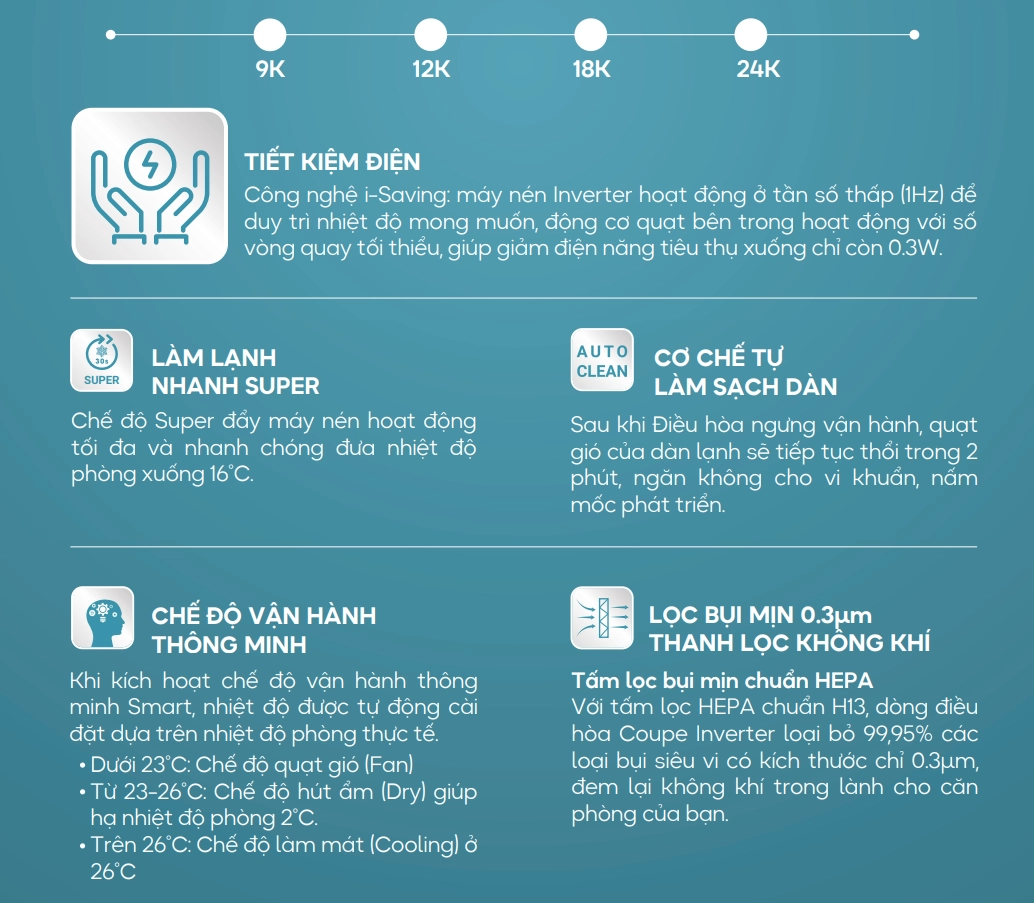 Máy lạnh treo tường Casper HC-09IA32 Inverter Gas R32