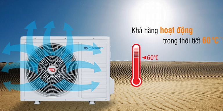 Dàn trao đổi nhiệt nóng và lạnh của máy lạnh Dairry đều dùng vật liệu là đồng nguyên chất 100% bền bỉ hơn so với dàn nhôm kéo dài tuổi thọ cho điều hòa mang đến cho gia đình sự yên tâm tuyệt đối trong mọi điều kiện thời tiết kể cả thời tiết khắc nghiệt như ven biển của Việt Nam. Dàn trao đổi nhiệt của máy lạnh Dairry được tối ưu hiệu suất hoạt động khi máy vượt qua quá trình thử thách hoạt động trong môi trường nhiệt độ cao tới 60 độ - một con số quá ấn tượng.