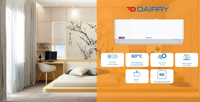 Máy lạnh Dairry được thiết kế nhỏ gọn với tông màu trắng tinh khôi phù hợp với mọi không gian sống. Sản phẩm được hoàn thiện tỉ mỉ với vật liệu nhựa cao cấp chống bám bụi bẩn và vi khuẩn. Bạn sẽ không phải lo lắng trong vấn đề vệ sinh khi mà chỉ với miếng vải sạch là chiếc điều hòa đã được lau sạch một cách hoàn toàn.