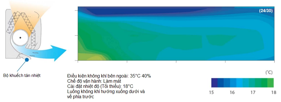 "Luồng không khí theo chiều ngang" không thổi gió trực tiếp vào người trong phòng.