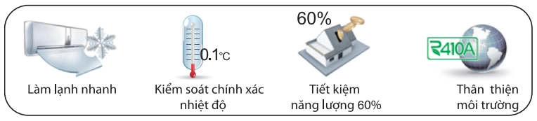 Điều hòa GREE sử dụng Gas R410A cho năng suất làm lạnh cao hơn 1,6 lần so với gas R22. Gas R410A còn giúp cho hơi lạnh sâu hơn, tiết kiệm điện và bảo vệ môi trường.