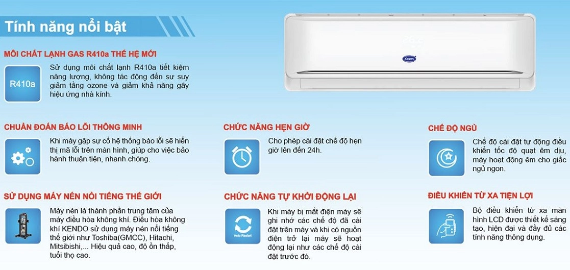 - Máy lạnh treo tường Kendo KGW-C010/KGO-C010 Gas R410a