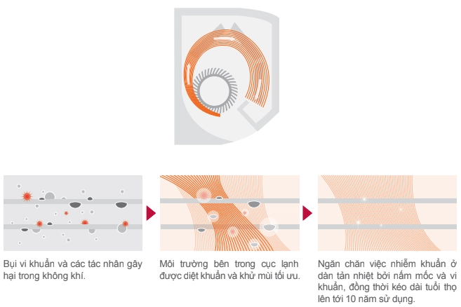 Làm sạch không khí: Chức năng tự động làm sạch tiên tiến ngăn chặn sự hình thành các vi khuẩn và nấm môc trên dàn tản nhiệt, đem đến cho bạn luồng không khí trong lành.