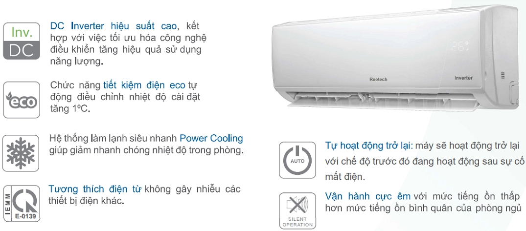 - Máy lạnh treo tường Reetech RTV9-TC-BI/RCV9-TC-BI Inverter Gas R32