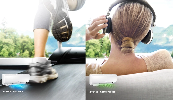 Máy lạnh Samsung làm lạnh theo 2 bước. Đầu tiên, máy sẽ làm lạnh tức thì với chế độ Làm lạnh nhanh. Sau đó, máy sẽ tự động điều chỉnh sang chế độ Làm lạnh thoải mái để duy trì nhiệt độ mong muốn, mà không cần phải liên tục thay đổi thiết lập.