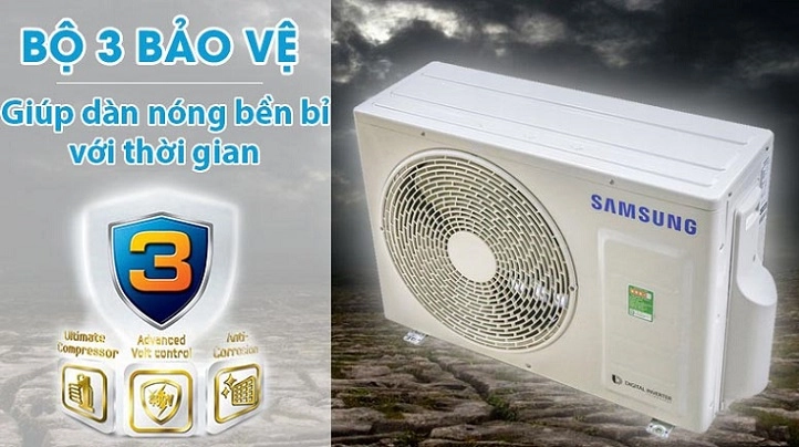 Máy lạnh của Samsung này còn trang bị bộ ba bảo vệ tăng cường với 3 chức năng: