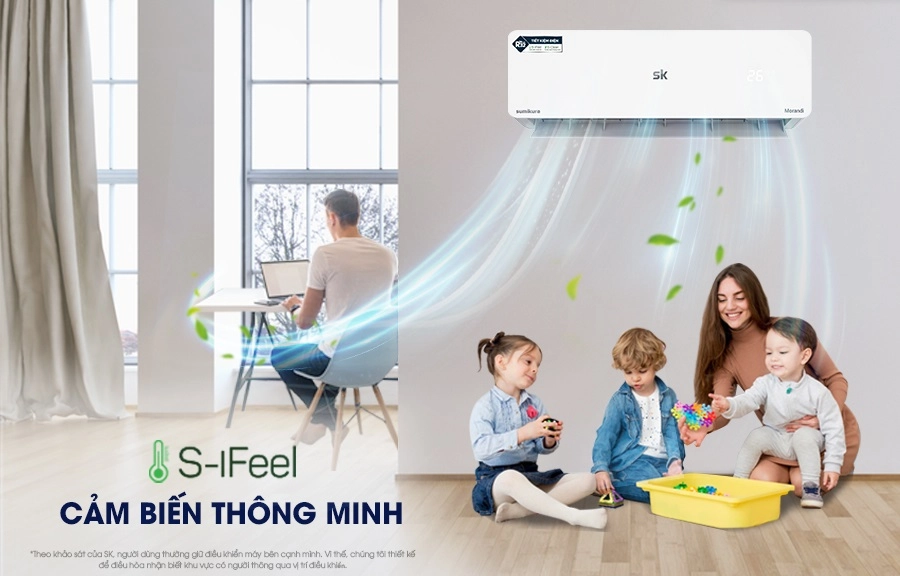 Thêm cảm biến nhiệt độ bên trong điều khiển, SK Series Morandi có thể nhanh chóng nhận ra sự thay đổi nhiệt độ tại vị trí người dùng ở mức 0,5 độ C. Từ đó điều chỉnh hướng gió và tốc độ quạt phù hợp để đảm bảo cảm giác dễ chịu.