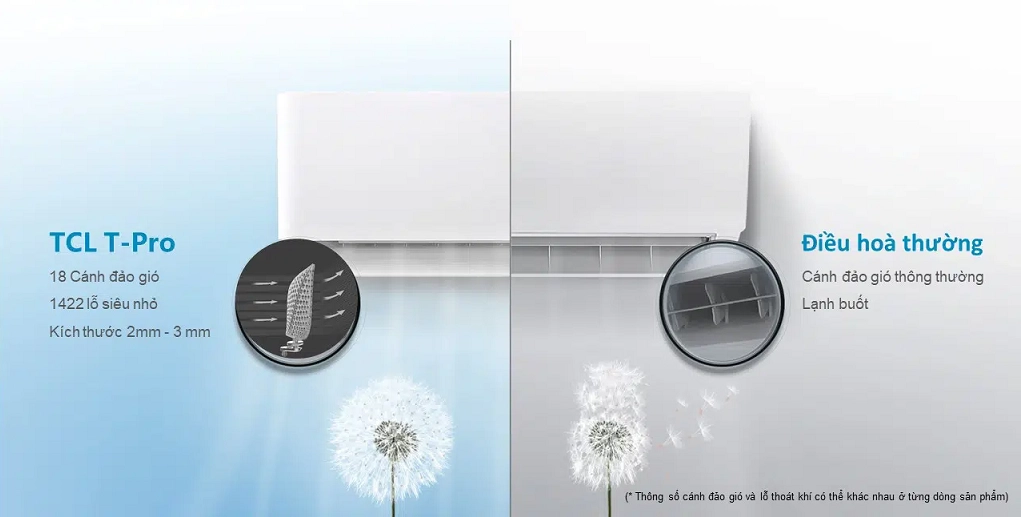 TCL ra mắt thiết kế tối giản, tăng hiệu suất làm mát và tiết kiệm không gian hơn. Quạt gió được lắp đặt kích thước to hơn vì thế lưu lượng gió luân chuyển nhiều hơn nhưng vẫn đảm bảo độ êm ái và yên tĩnh cho không gian gia đình bạn.