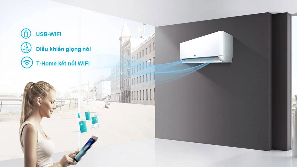 Máy lạnh TCL dễ dàng kết nối với TV thông minh, điện thoại và các thiết bị khác thông qua ứng dụng TCL HOME hoặc trợ lí ảo Google Assistant.