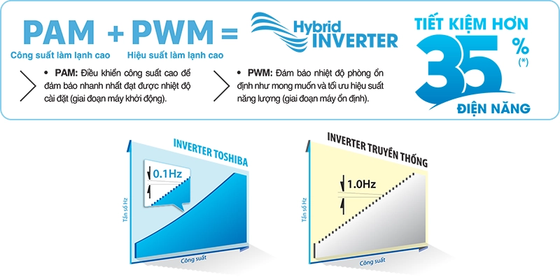 Sử dụng công nghệ Inverter, sản phẩm có khả năng tiết kiệm hơn 35% mức tiêu thụ điện năng. Từ đó, máy móc được vận hành êm ái, nhẹ nhàng và hạn chế tiếng ồn khó chịu trong khi hoạt động. Bên cạnh đó, chế độ Eco Mode không chỉ được đánh giá cao trong việc tiết kiệm năng lượng mà còn rất thân thiện với môi trường.