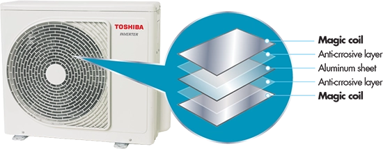 Cánh tản nhiệt dàn nóng của Toshiba có thể sử dụng tại bất kỳ môi trường nào, kể cả môi trường có nồng độ muối cao khi sản phẩm được bao phủ lớp chống oxy hóa cực kỳ chất lượng.