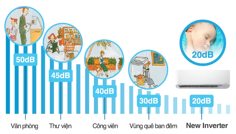 Với cấu trúc dàn lạnh kiểu mới giúp giảm thiểu tiếng ồn mang đến sự thoải mái, giấc ngủ êm.