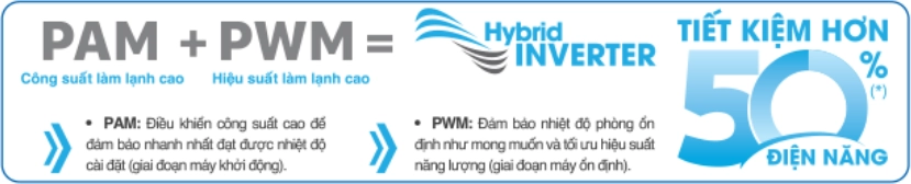 PWM: Đảm bảo nhiệt độ phòng ổn định như ý muốn đồng thời tối ưu hiệu suất tiết kiệm điện ( giai đoạn máy ổn định).