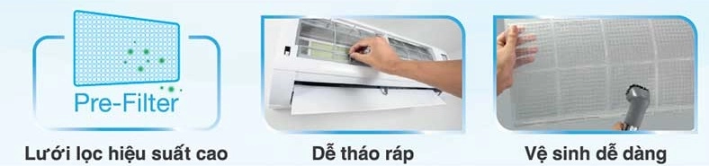 Lưới lọc rất tiện dụng vì có thể dễ dàng tháo ra để vệ sinh giữ cho luồng khí luôn sạch sẽ.