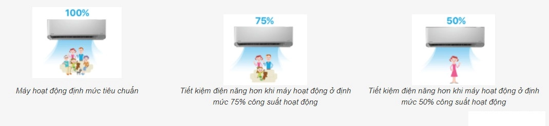 Máy lạnh chủ động tiết kiệm năng lượng tối ưu hơn với 3 mức tùy chọn công suất vận hành.