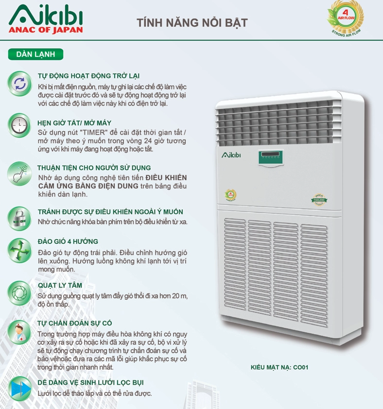 - Máy lạnh tủ đứng Aikibi AFF100C/AFC100C-CO01