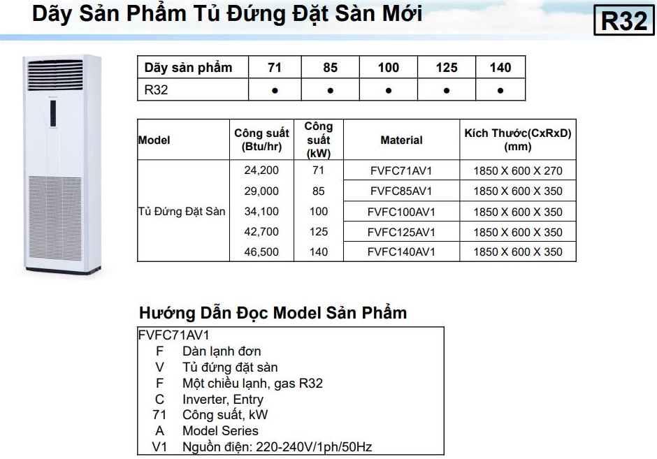 - Máy lạnh tủ đứng Daikin FVFC125AV1/RZFC125AY19 Inverter Gas R32 - 3 pha