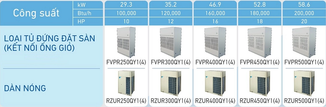 Máy lạnh tủ đứng Daikin FVPR-QY1 Inverter Gas R410a - Nối ống gió, công nghệ Nhật Bản, sản xuất tại Thái Lan. Dòng máy công nghiệp Packaged dành cho nhà máy và xí nghiệp.