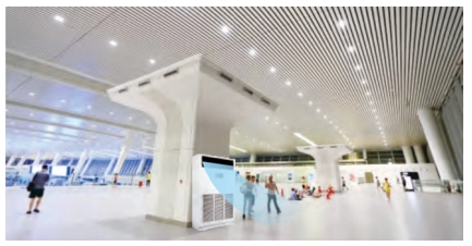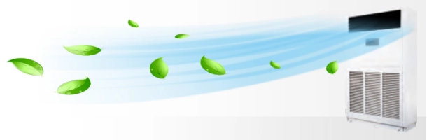 Cửa gió với góc rộng 180° giúp phân tán luồng khí lạnh đồng đều. Máy được trang bị hệ thống quạt ly tâm đường kính rộng, hiệu suất cao có thể đưa luồng khí lạnh ra xa, mang đến không gian thoải mái dễ chịu.