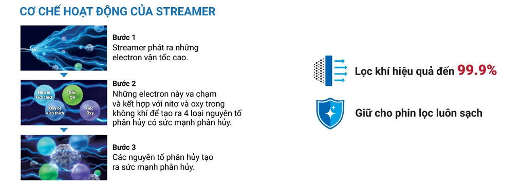 Chức năng này nhanh chóng phân hủy mùi hôi và chất gây dị ứng,,, bằng những electron tốc độ cao có khả năng ôxy hóa mạnh.