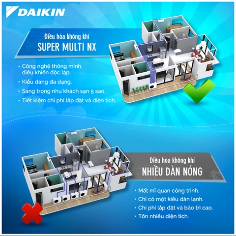 Dàn nóng Multi Daikin Super NX kết nối đa kiểu dàn lạnh