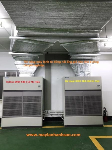 Hình ảnh hoàn thiện máy lạnh tủ đứng nối ống gió cho nhà xưởng