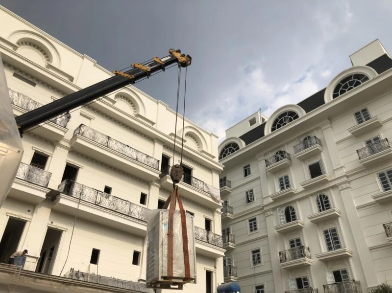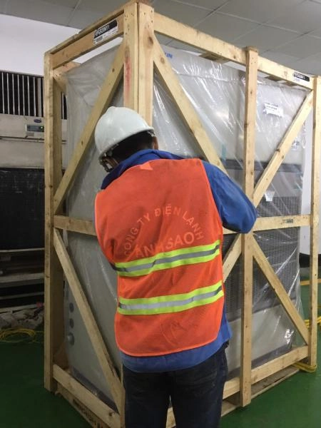 Dàn nóng máy lạnh giấu trần 15HP Daikin - Đang được cẩu lên sân thượng