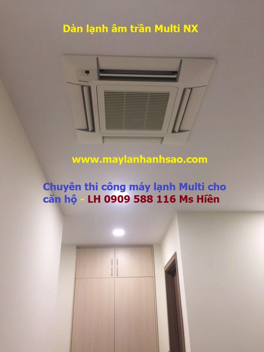 Dàn lạnh âm trần cassette: thiết kế đơn giản nhỏ gọn dễ kết hợp với các kiểu phòng.