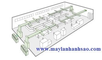 Hệ thống Điều hòa phù hợp với các nhà máy bởi việc kết nối ống gió thổi phía trên các dàn lạnh.